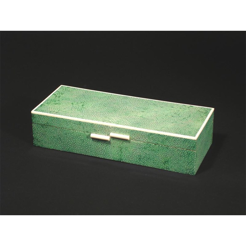 A shagreen mounted cedar cigarette box rectangular section with ivory beadwork unmarked 22 x 9cm.