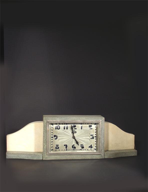 An Art Deco ATO two-colour shagreen mantel clock rectangular section, with Arabic numerals signed on the face, made in France 53cm. wide