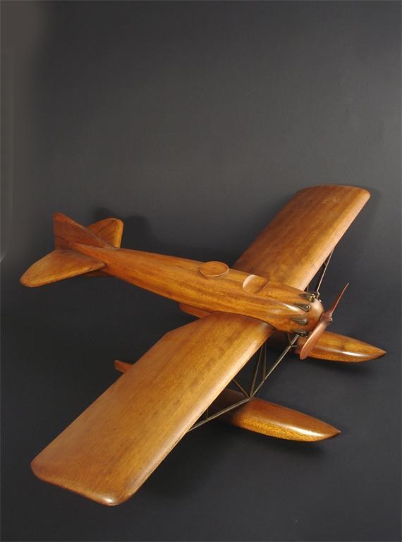 A continental wood and brass model of a seaplane circa 1930, unsigned length 50cm, wingspan 80cm.