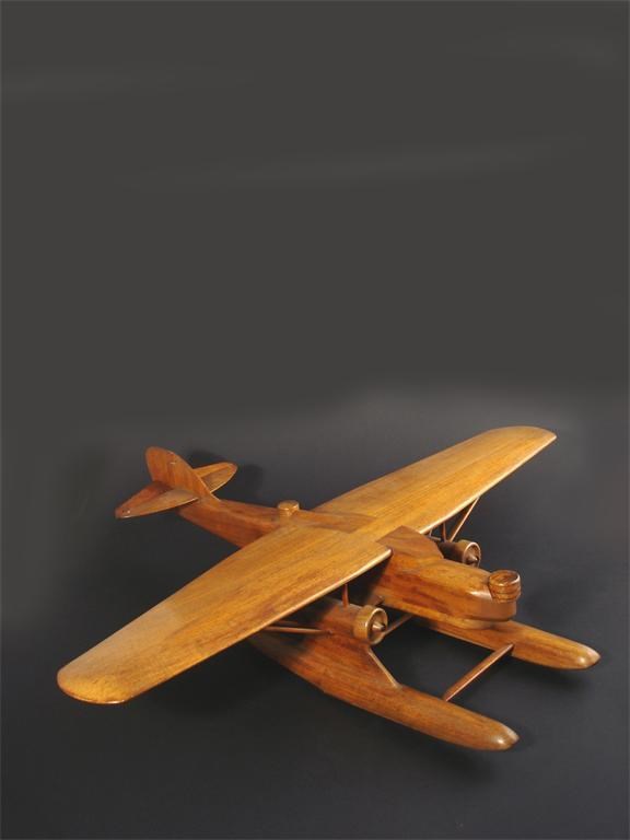 A continental wood and brass model of a seaplane, circa 1930, unsigned length 56cm, wingspan 74cm.