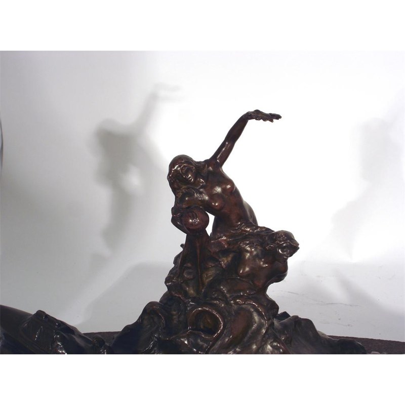 'Le Championnat de la Mer' an Important bronze trophy cast from a model by Mastroianni, Monaco 1908, modelled with two boats racing past sea maidens bearing up the winner's laurels, on granite base signed in the bronze 74cm. wide Le Championnat de la Mer ran between 1908 and 1912 off the coast of Monaco. It saw boats powered by motor car engines that had been adapted for the rigours of high-speed water racing, vehicles that would be coined canots automobiles.