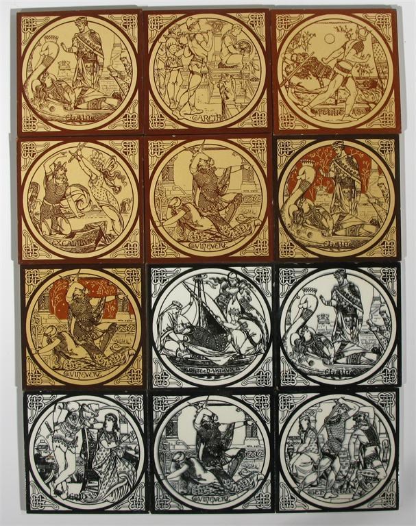 'Tennyson's Idylls of the King' twelve Minton tiles designed by John Moyr Smith, printed in colours facsimile signature, impressed marks 15 cm. square