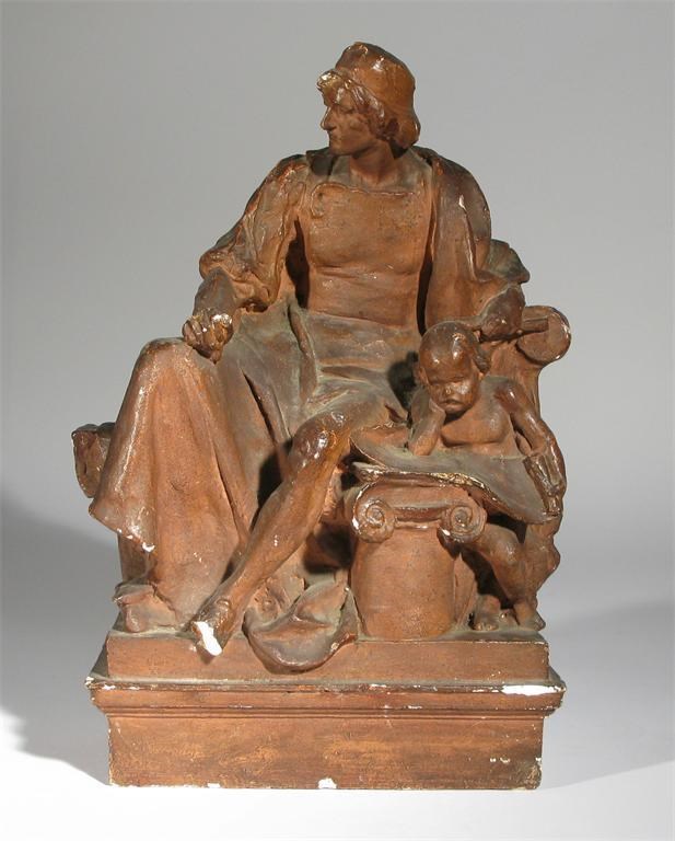 A plaster figural maquette modelled as a philosopher painted red