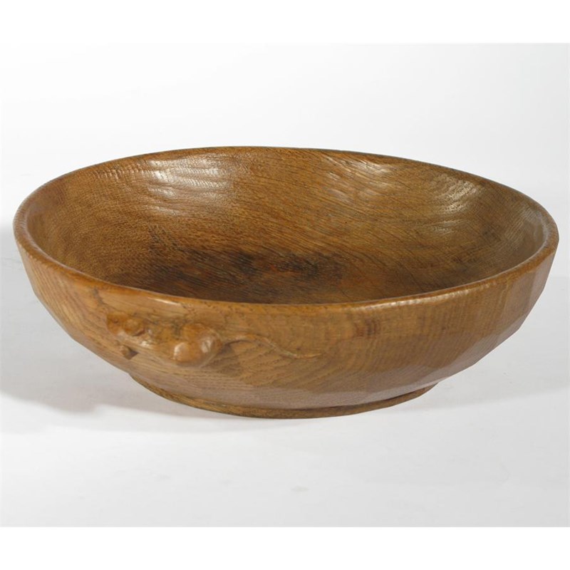 A Robert 'Mouseman' Thompson oak bowl carved with a mouse signature