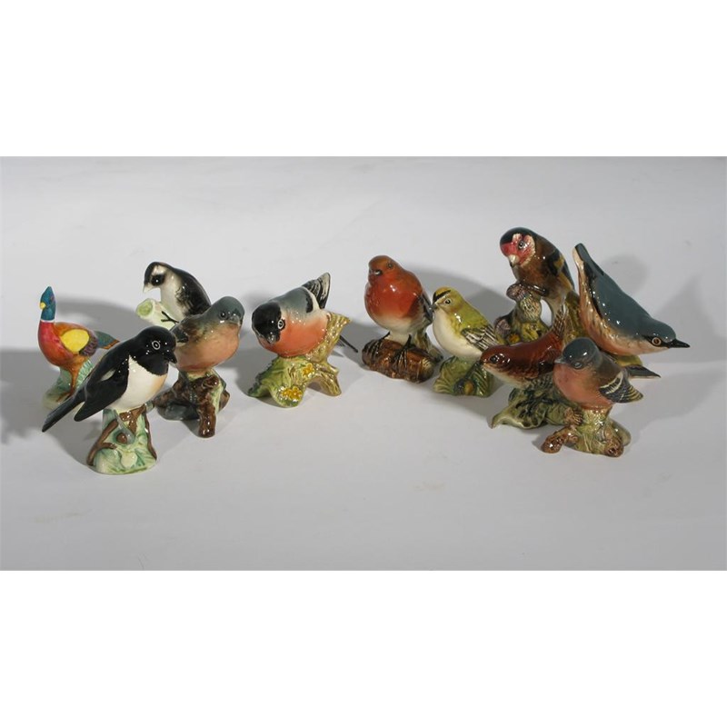 Nine Beswick bird models each painted in colours, and two Continental bird models printed marks, minor damages