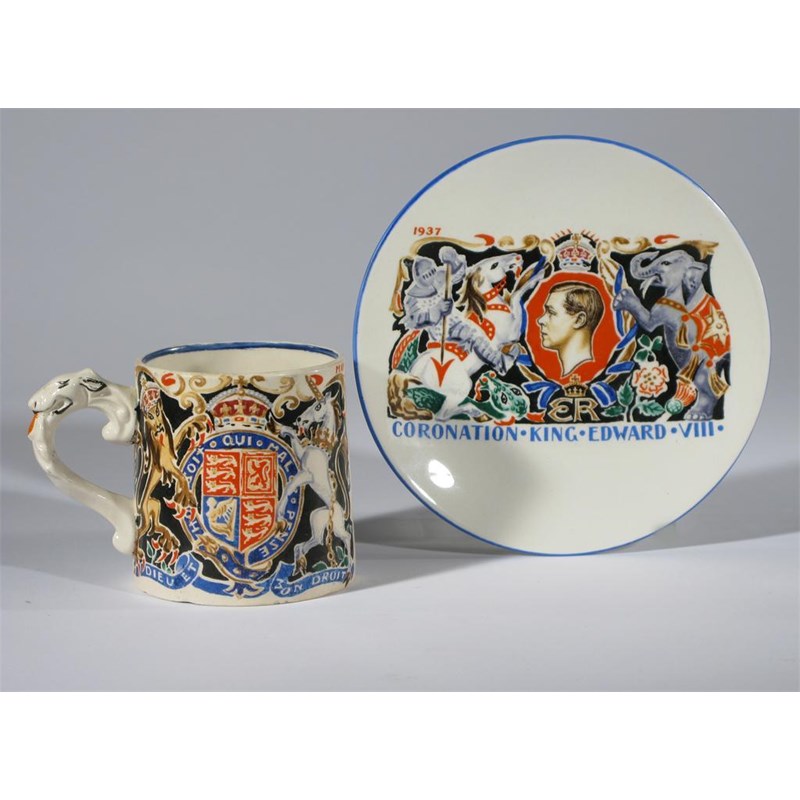 'King Edward VIII - Coronation' a Burleigh Ware commemorative plate and mug designed by Dame Laura Knight, printed in colours printed factory marks, facsimile signature plate 15.5 cm. diam.