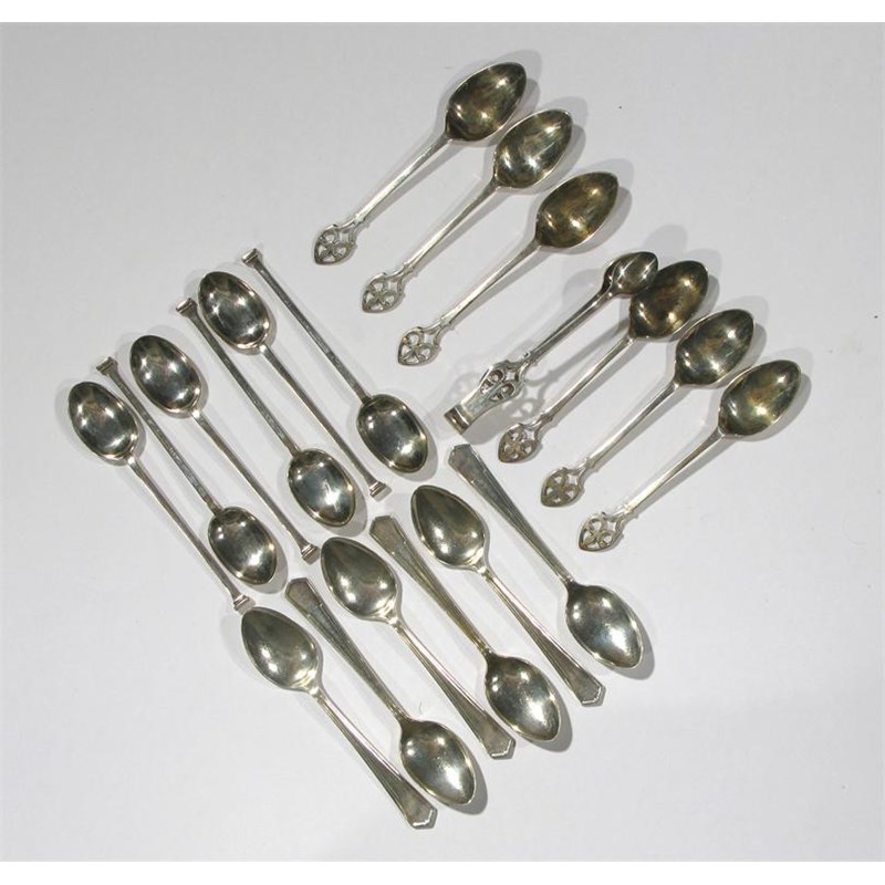 A set of six Cooper Bros & Sons silver tea spoons, in fitted case, and three other sets of silver tea spoons, stamped marks, Sheffield 1916
