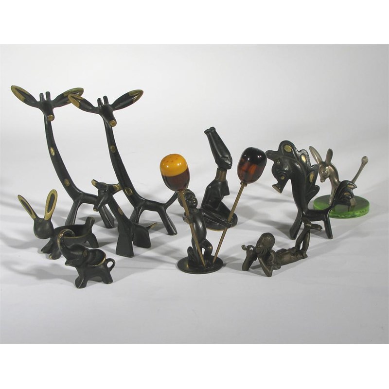 A Rena Rosenthal, Austrian patinated bronze figure eight other bronzes similar and a Bergman style cold painted bronze figure of a boy smoking a pipe various marks largest 16.5 cm. high