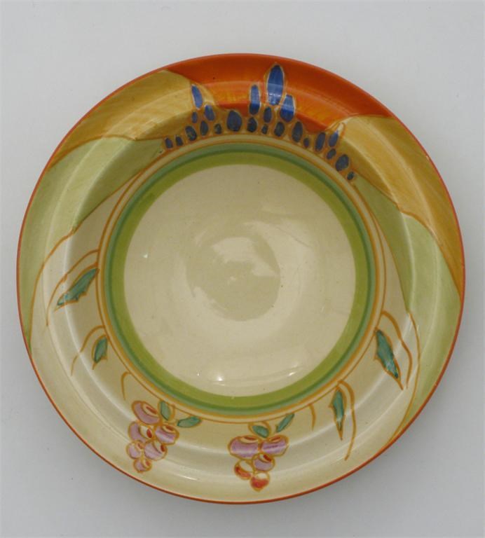 'Windbells' a Clarice Cliff Bizarre breakfast bowl painted in colours to the rim printed factory...