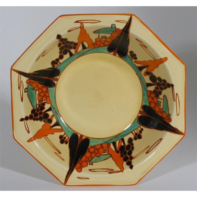 'Orange Trees and House' a Fantasque Bizarre bowl radially decorated printed factory mark 23 cm. diam.