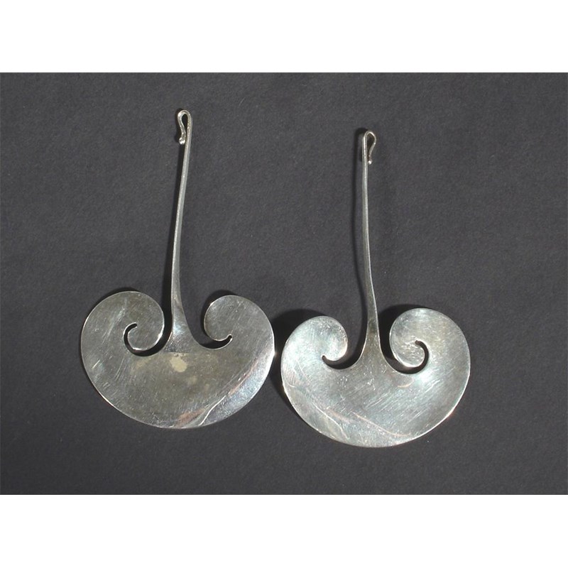 A pair of Georg Jensen silver earrings designed by Vivianna Torun Bulow-Hube, model no.372A, stamped marks 7cm. long