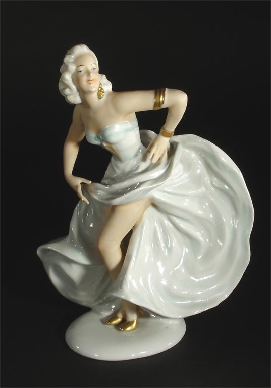 A Continental 1950's figure of a lady with billowing white dress printed and impressed marks 23.5cm. high