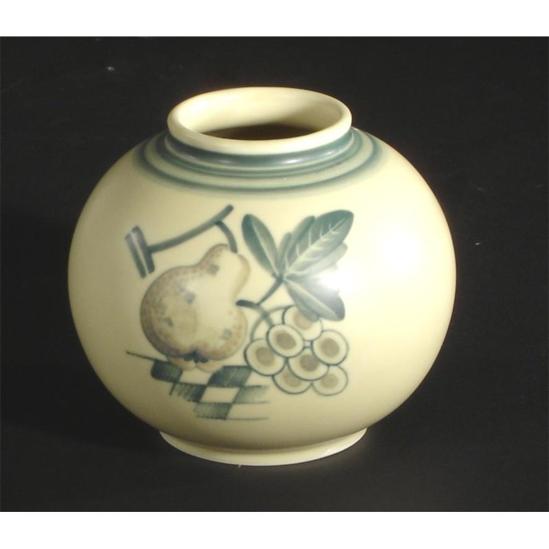 A Royal Copenhagen vase model 6/25, painted with fruit in colours on a cream ground printed and painted marks 10.5cm. high
