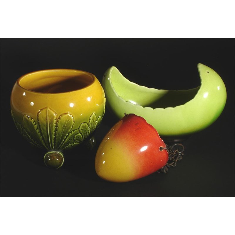 An Ault Pottery flower vase on three acorn ball feet and two other vases
