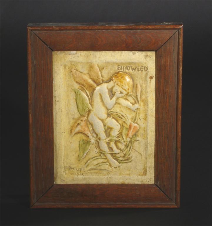 'Bindweed' a rare plaster plaque by E.M.Rope modelled in low relief and coloured incised and dated 1912 12cm. high