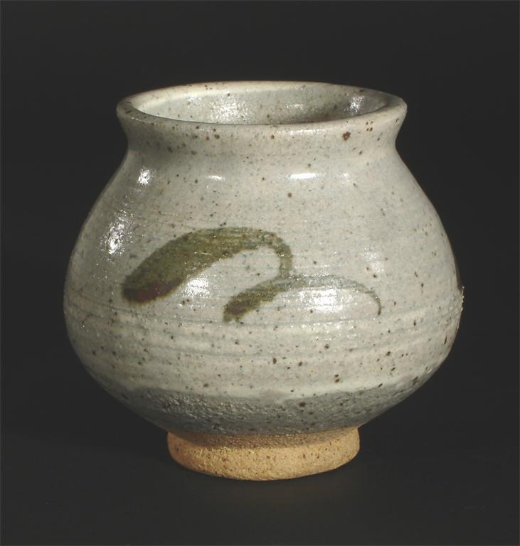 A Bernard Leach St Ives stoneware vase ovoid, painted with simple brush stroke design impressed Bl and St Ives seal marks 12cm. high