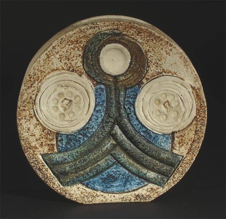 A Troika Pottery Wheel vase probably by Colin Carbis, modelled in low relief, in shades of blue and brown painted marks 16cm. high