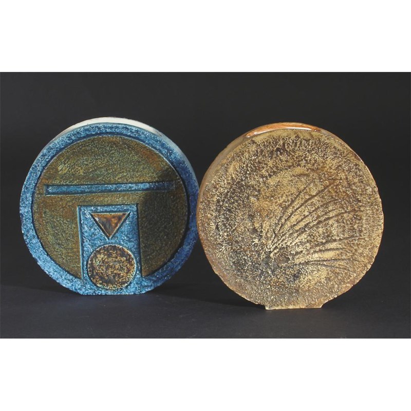 Two Troika Pottery Wheel vases painted in colours painted and printed marks 11.5cm. high