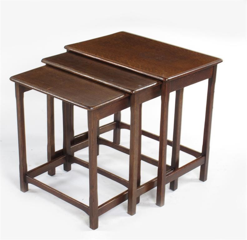 A nest of three oak occasional tables probably Heal's unmarked 51 x 33cm.