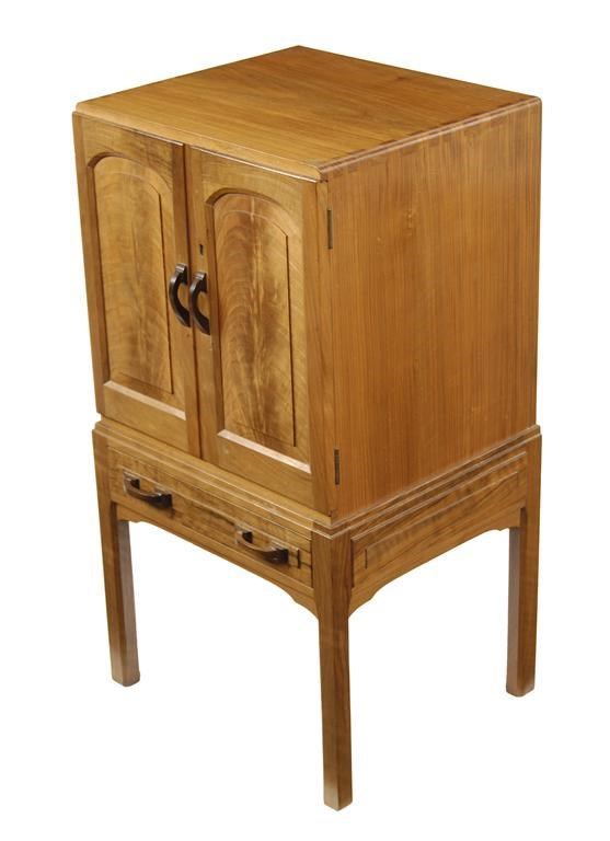 A Stanley Webb Davies walnut cabinet, dated 1959, by Sidney Allan Johnston and Fred Ellison,  applied paper label, carved monograms and date 79cm. high