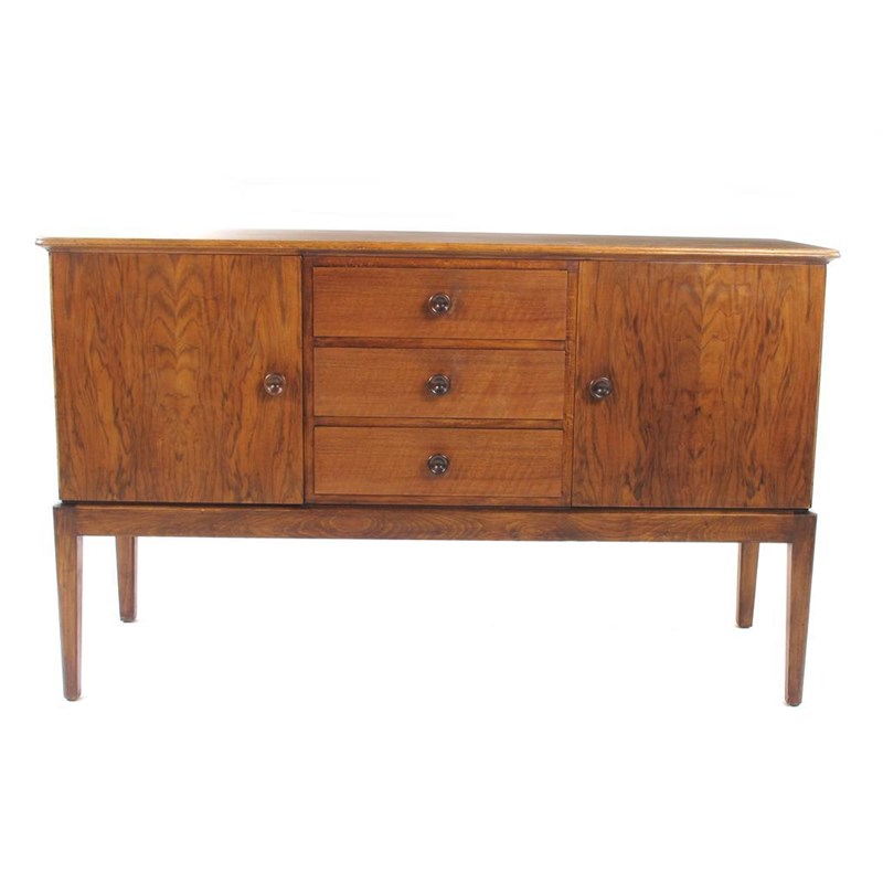 A Gordon Russell walnut sideboard rectangular with four central drawers, flanked by doors, applied label 141 x 49cm.