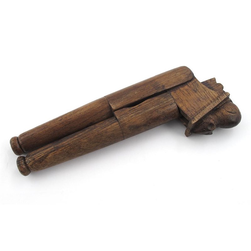 A pair of Robert Mouseman Thompson oak nut crackers, with carved mouse signature 21cm. long