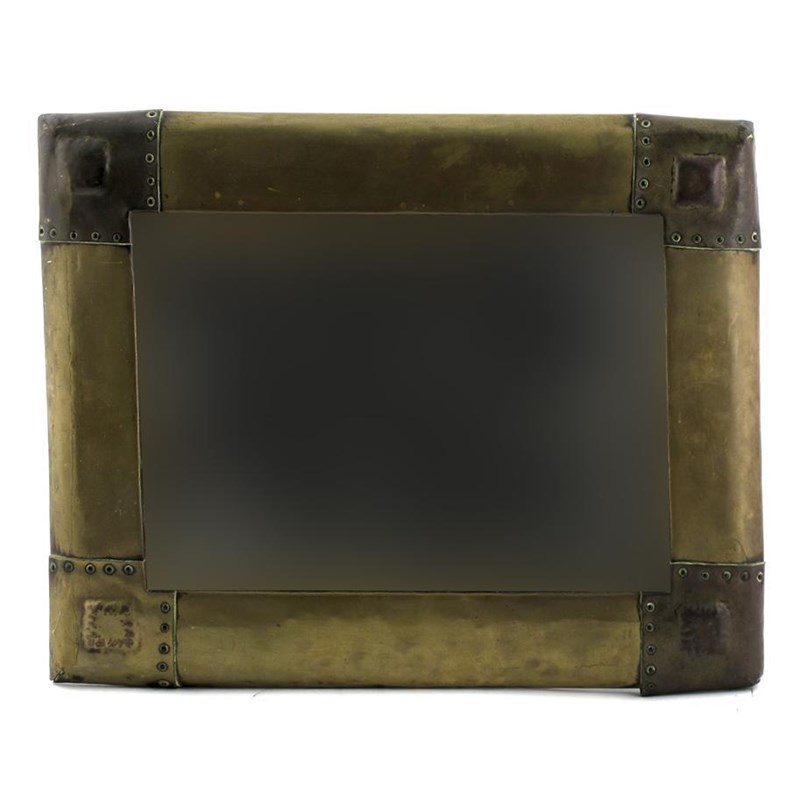 An Arts and crafts brass wall mirror, rectangular form with riveted corner decoration inscription to reverse 46 x 37cm.