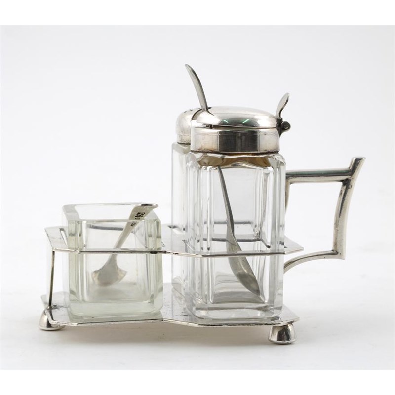 Michael Whiteway, Christopher Dresser A Design Revolution, page 144, to compare the handle of this cruet with the milk-jug handle designed by Dr Christopher Dresser and produced by Hukin and Heath