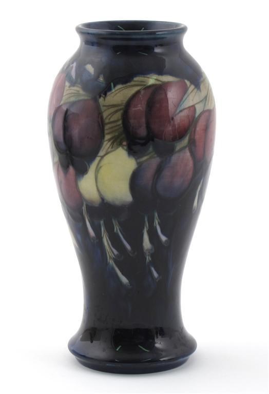'Wisteria' a Moorcroft Pottery vase, designed by William Moorcroft, painted in colours on a blue ground impressed marks, green signature 19.5cm. high