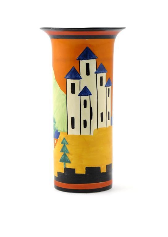 'Orange Lucerne' a Clarice Cliff Applique Bizarre vase, shape no.195, painted in colours printed and painted marks 22.5cm. high