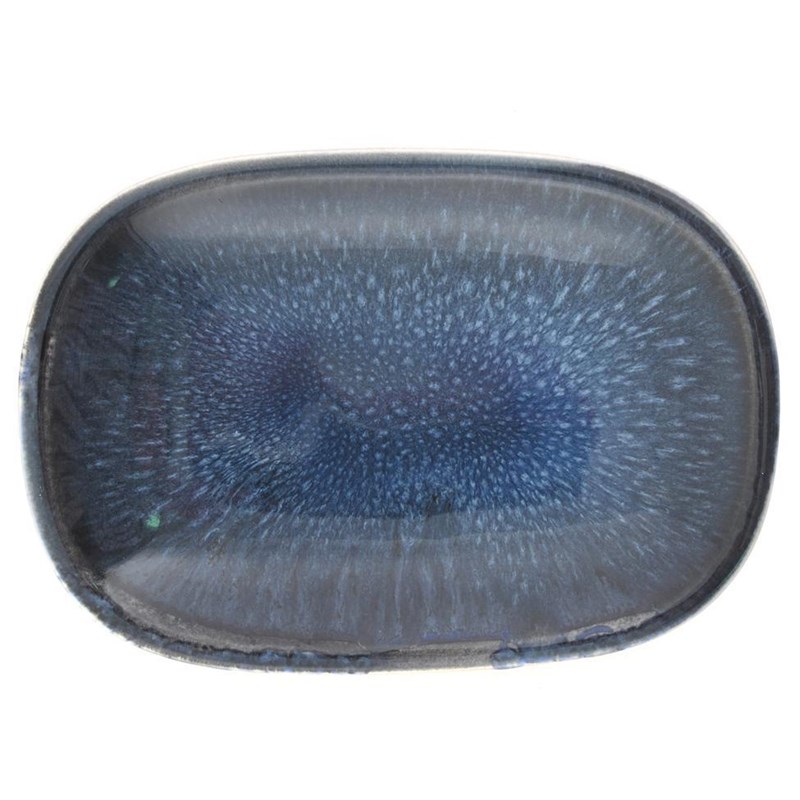 A Wedgwood earthenware tray, by Norman Wilson, mottled blue glaze to interior, the exterior matt mushroom, indistinct impressed marks 17cm. wide
