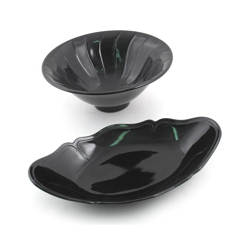 A Wedgwood black basalt bowl, by Norman Wilson, fluted form with glass glaze, and a dish similar impressed mark, small chip to rim, 20cm. wide.