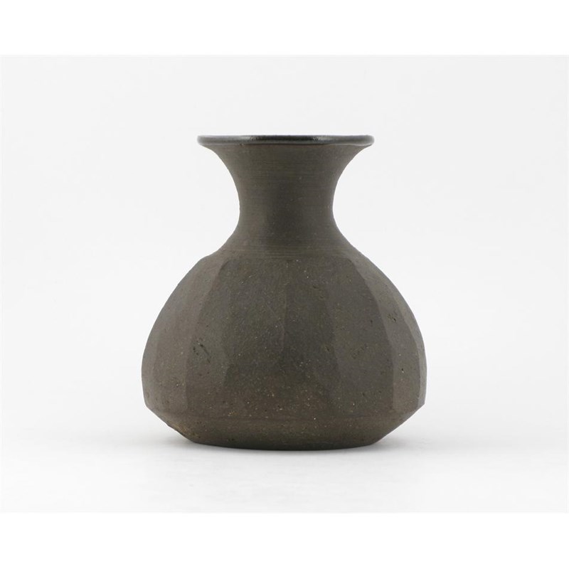 a Leach Pottery cut-sided stoneware vase glazed to the interior with tenmoku impressed seal marks 15.5cm. high