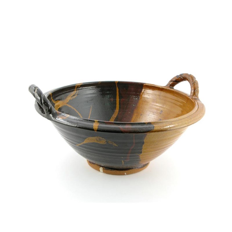 a large terracotta bowl, twin-handled form slip decorated unsigned 49cm. wide