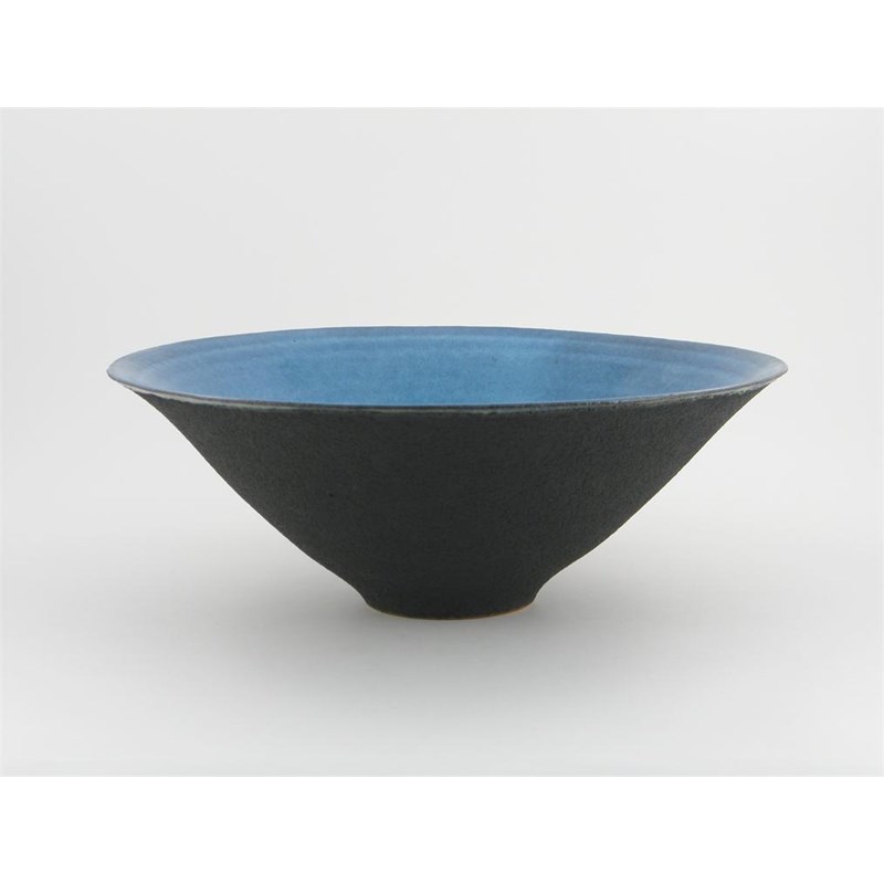 a large bowl with flaring rim, the exterior textured black, the interior glazed blue impressed seal mark 40.5cm. diam.