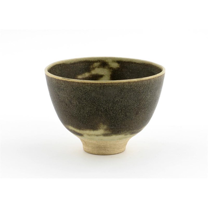a stoneware bowl, glazed to the foot in a matt bronze glaze over pale blue and buff impressed seal mark 13.5cm. diam.