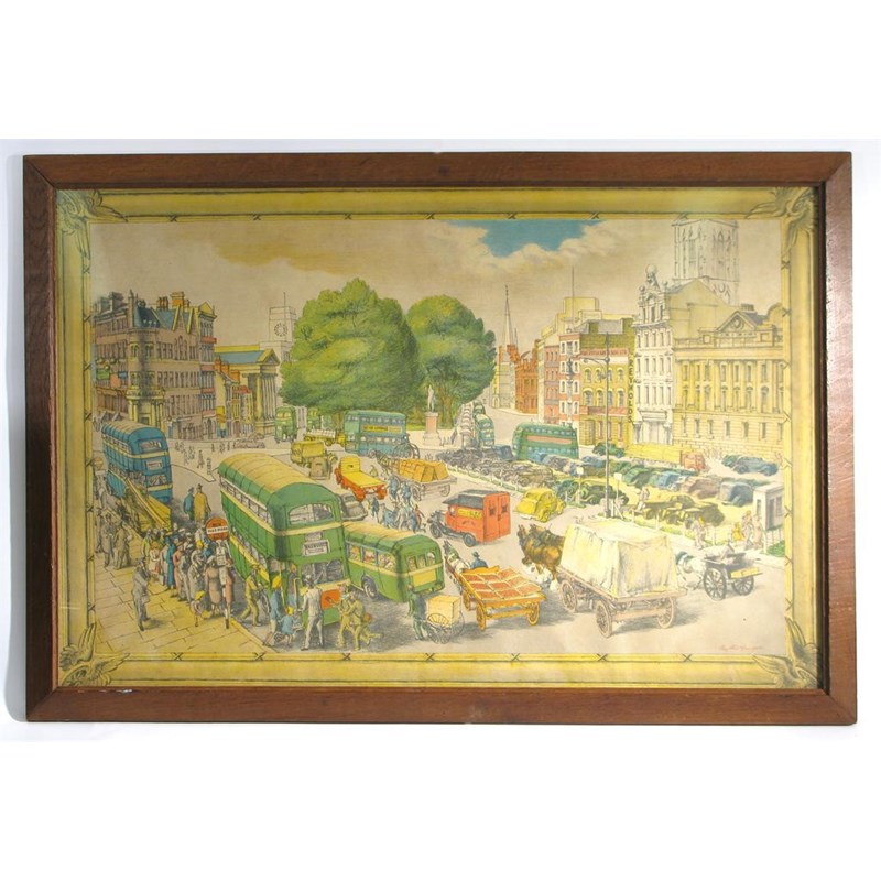 A lithographic print by Phyllis Granger framed, signed in the print 75 x 49cm.
