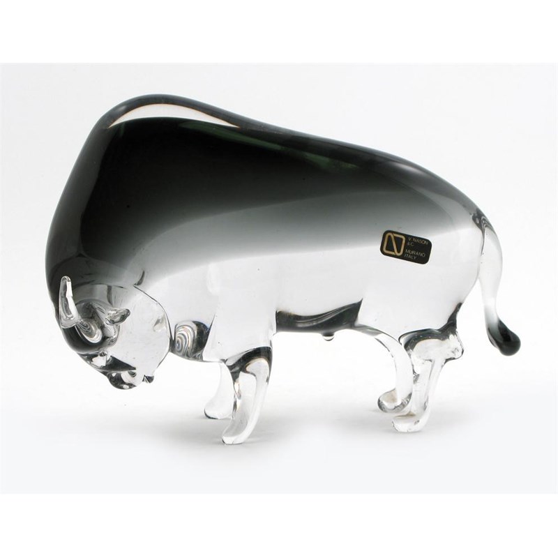 A V Nason, Murano glass bull amethyst glass cased in clear applied paper label 28cm. wide