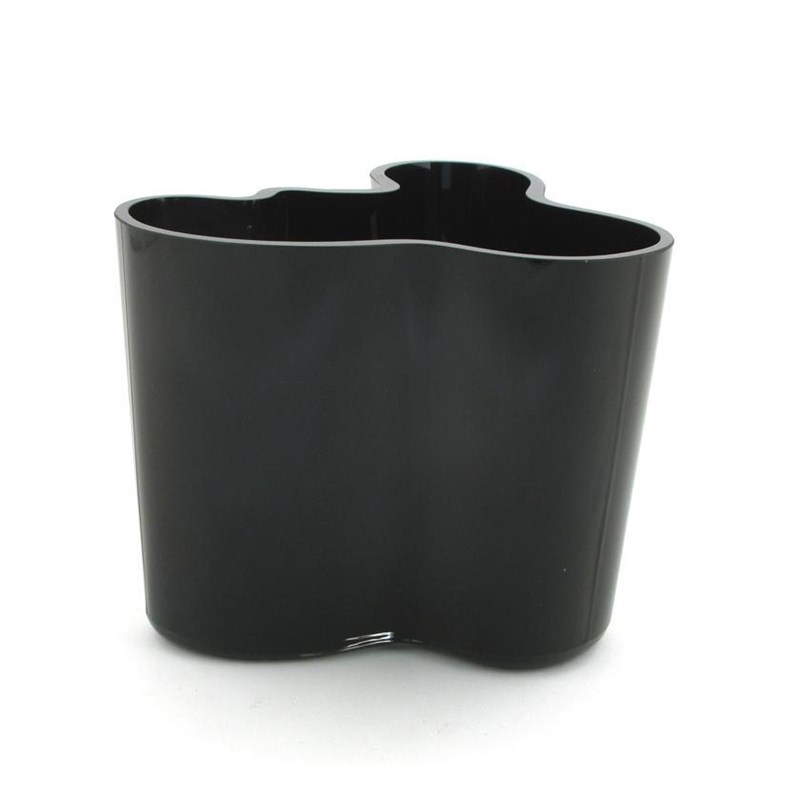 A black glass Savoy vase designed by Alvar Aalto, irregular section, acid etched mark 12cm. high