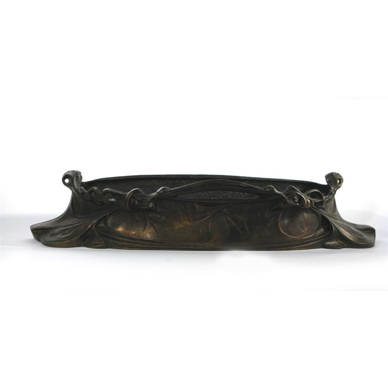 An Art Nouveau cast iron jardiniere, cast from a design by Hector Guimard, long rectangular form with sinuous foliage decoration unsigned 95cm. wide