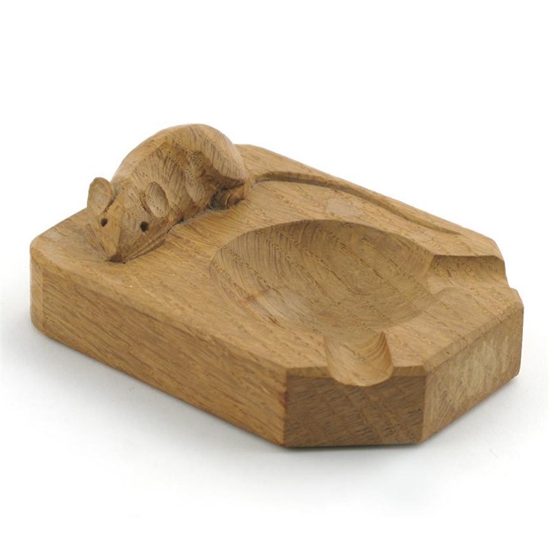 A Robert Mouseman Thompson oak ashtray with carved mouse signature 10.5cm. long