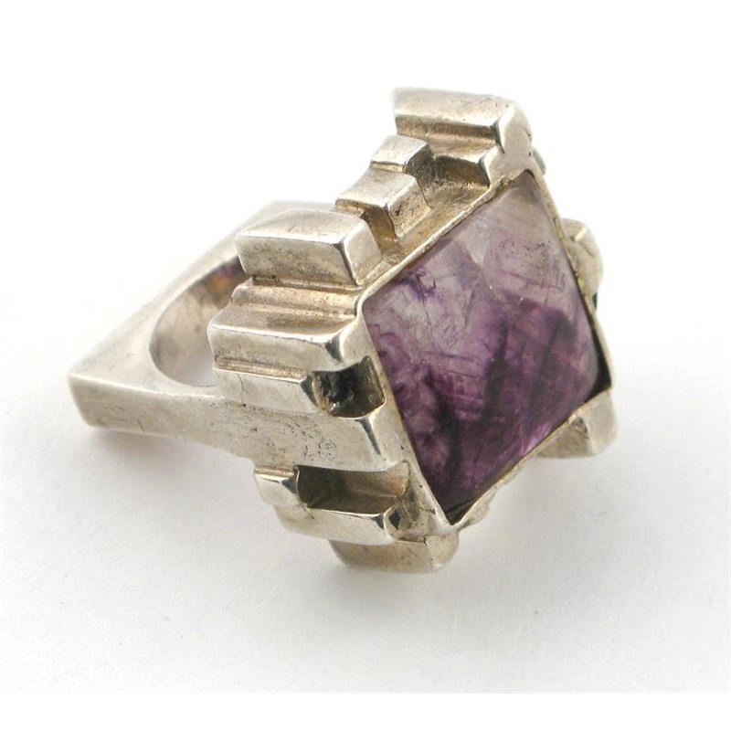 An English silver and amethyst stone ring by WM (D), stamped marks, London 1991