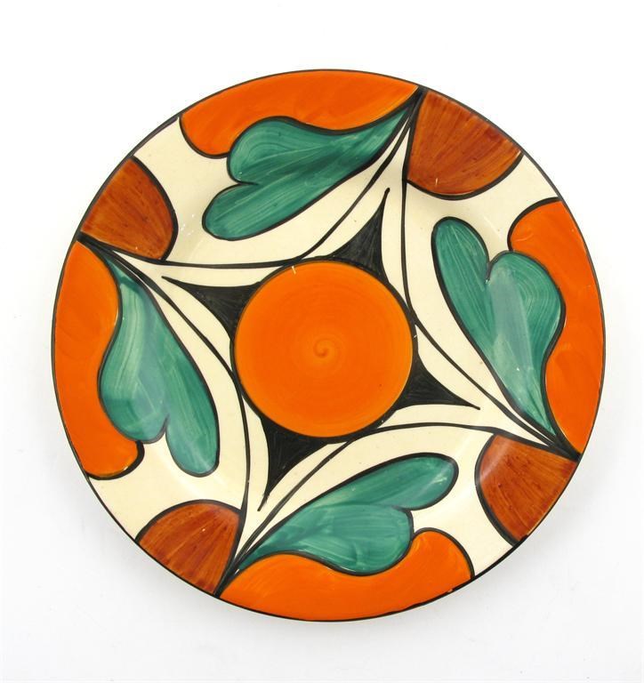 'Double V' a Clarice Cliff Bizarre plate painted in colours printed factory mark 17.5cm. diam.