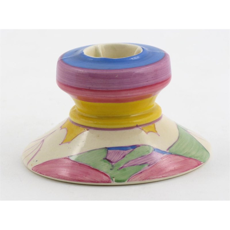 'Gibraltar' a Clarice Cliff Fantasque Bizarre 331 candlestick painted in colours printed factory mark 9cm. diam.