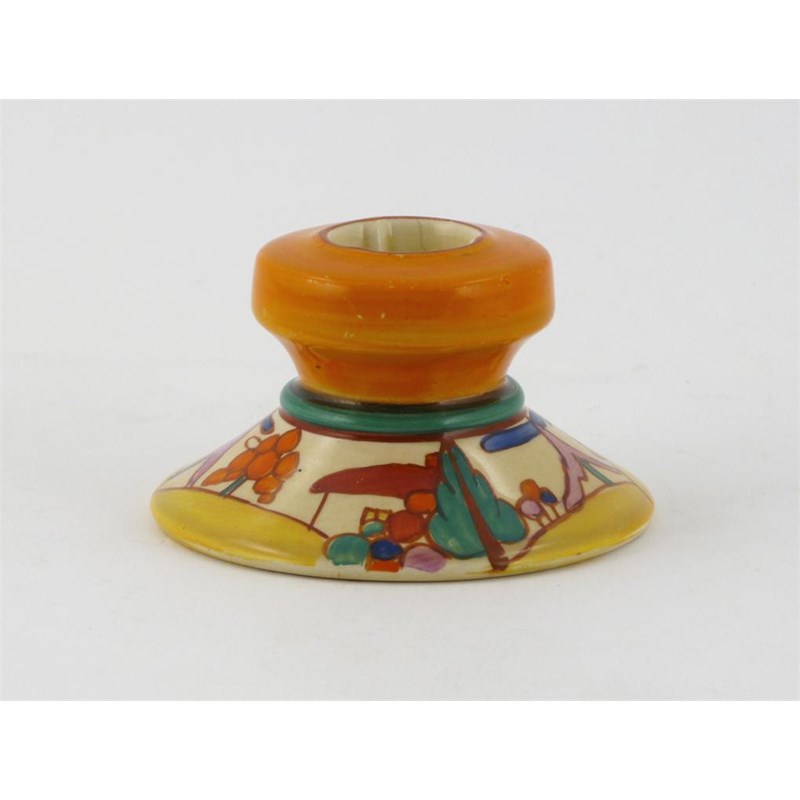 'Seven Colour Secrets' a Clarice Cliff Fantasque Bizarre 331 candlestick painted in colours printed factory marks, hairline to rim 9cm. wide