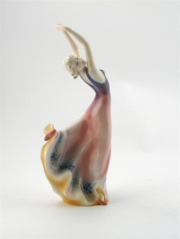 A Katshutte Pottery figure of a dancer modelled wearing pink dress printed and impressed marks 32cm. high