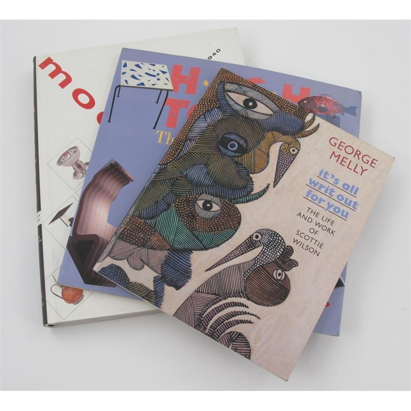 'Modernism' a reference book by Alistair Duncan, 'High Touch- The New Materialism in Design' by Robert Janjigian, and a collection of books on design