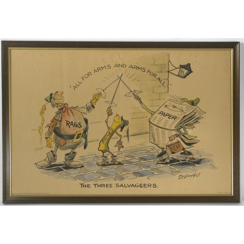 'The Three Salvageers' and 'The Big New Round Up' two war effort posters designed by Sidney 'George' Strube, framed signed in the print, image 74 x 49 cm.