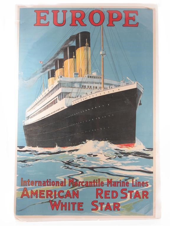 'Europe - American Red Star White Star' a lithographic poster designed by Fred Hoertz, signed in the print, minor losses 104 x 68cm.