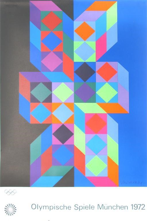 'Olympische Spiele Munchen 1972' An Olympic lithographic poster by Victor Vasarely, unmounted signed in the print 100 x 64cm.